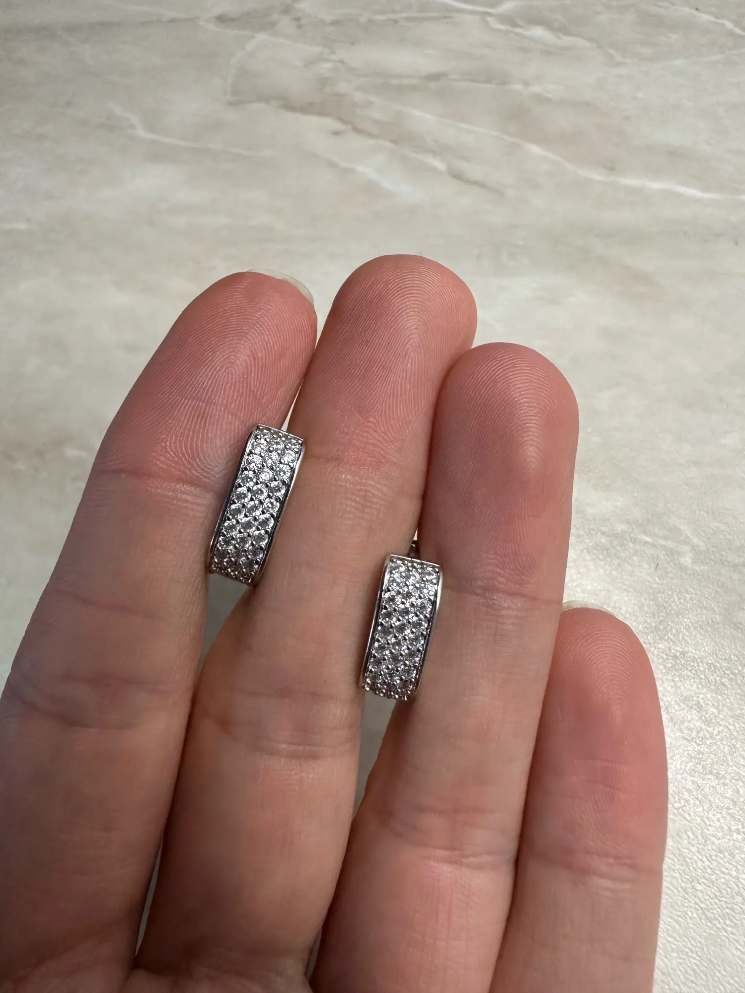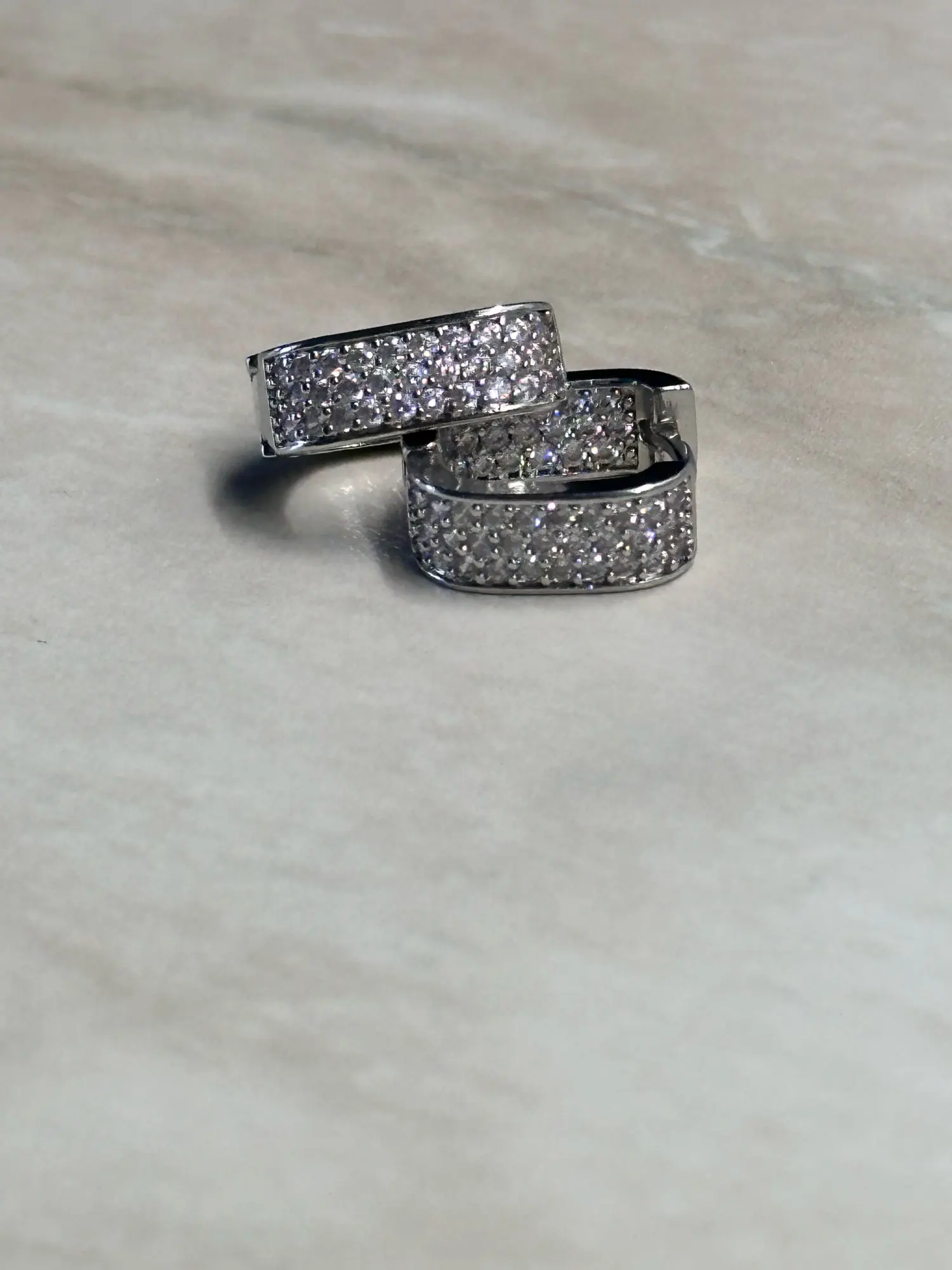 A cute square hoop with soft CZ sparkle for the prettiest glow.
