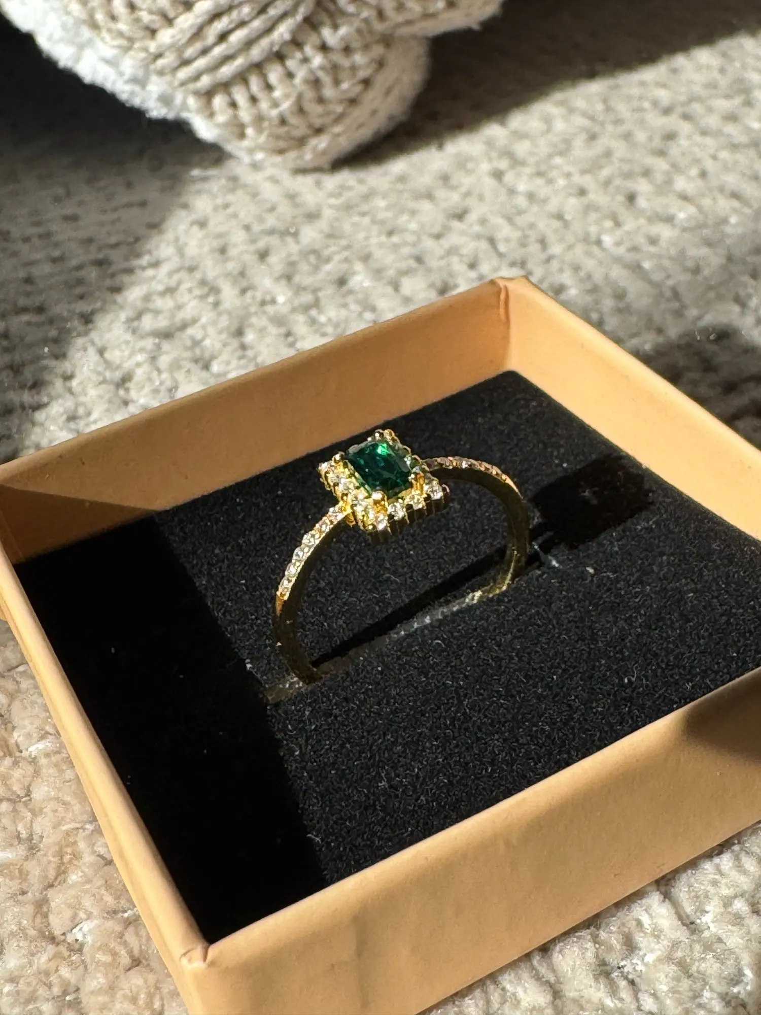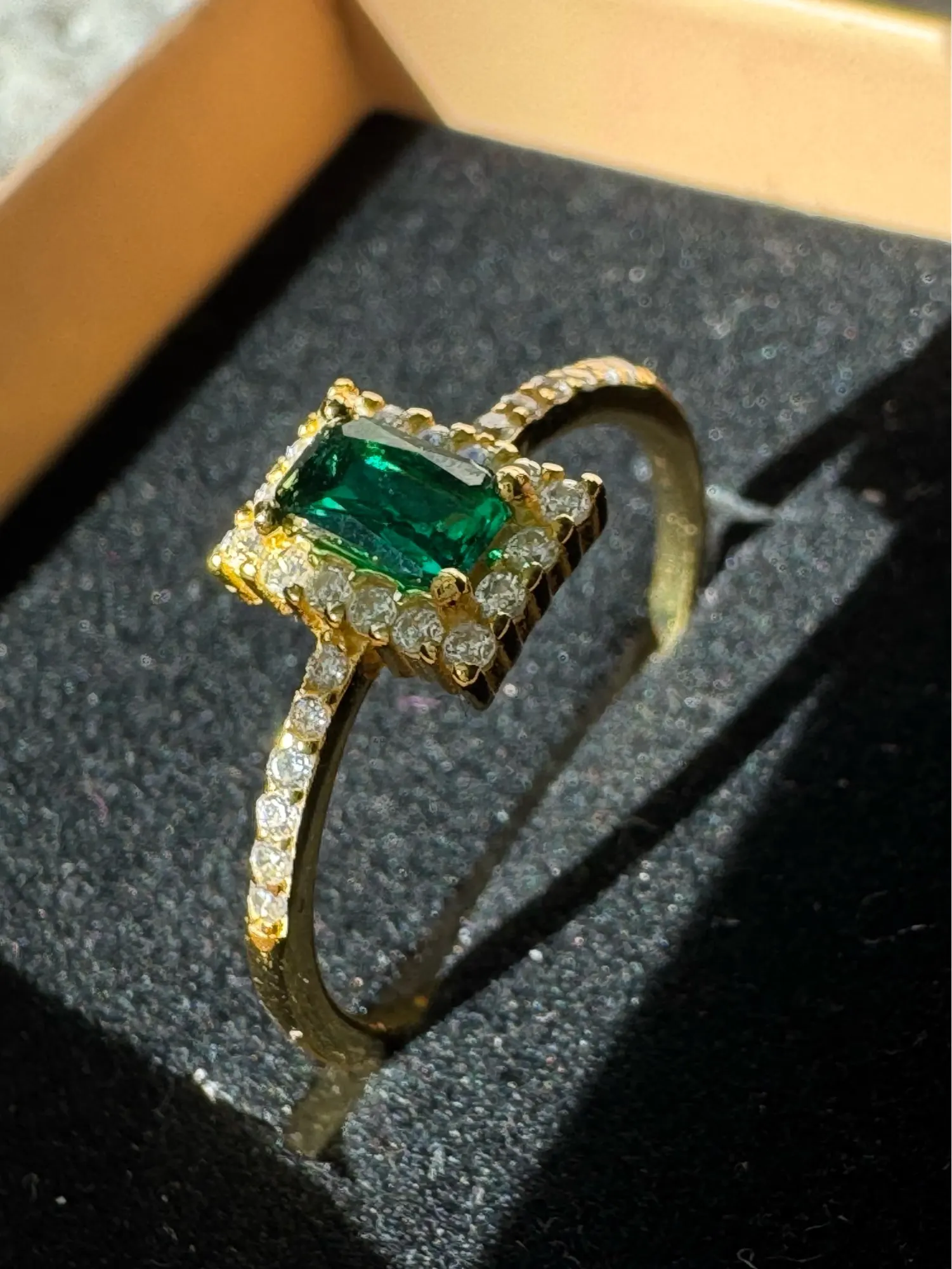A vivid green stone shimmers like a secret garden, catching light with timeless beauty.
